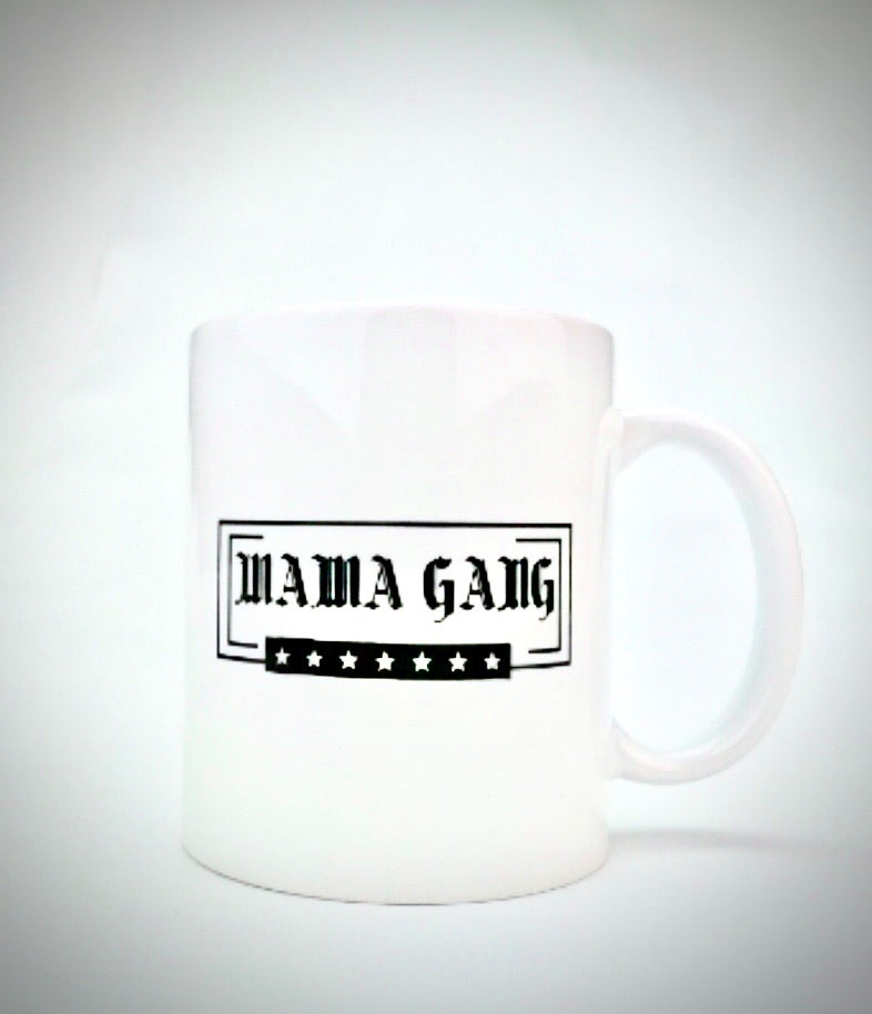 Power up your mornings with this glazed ceramic Mama Gang mug.
