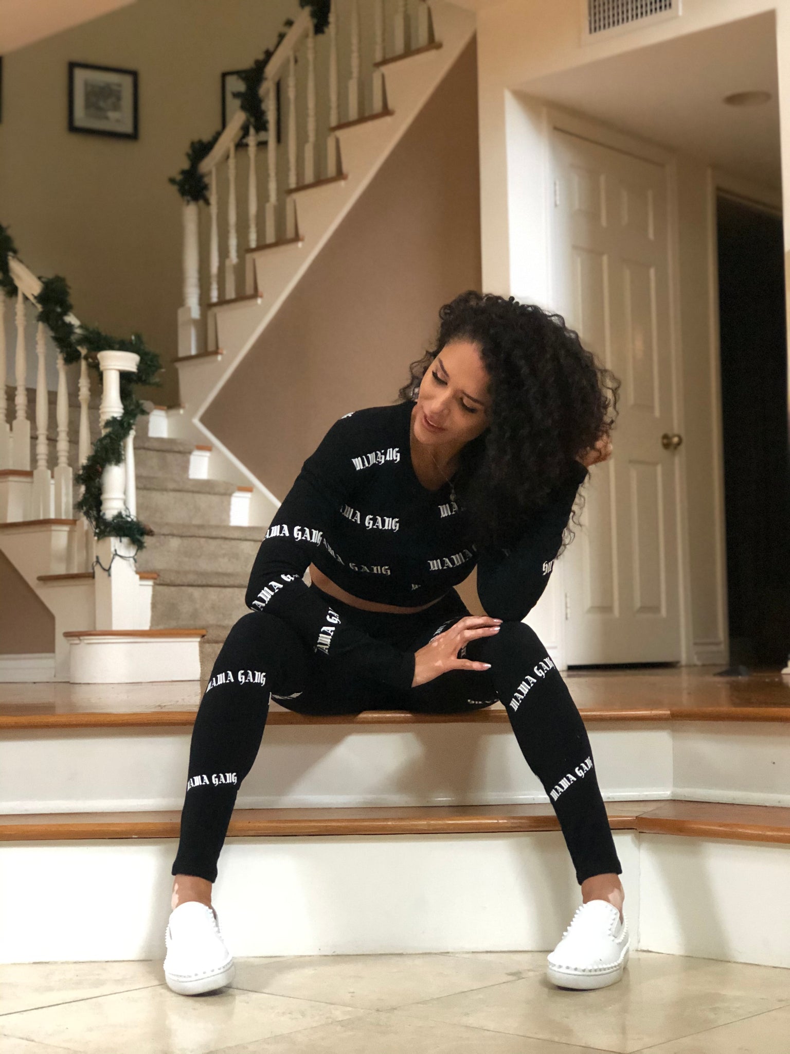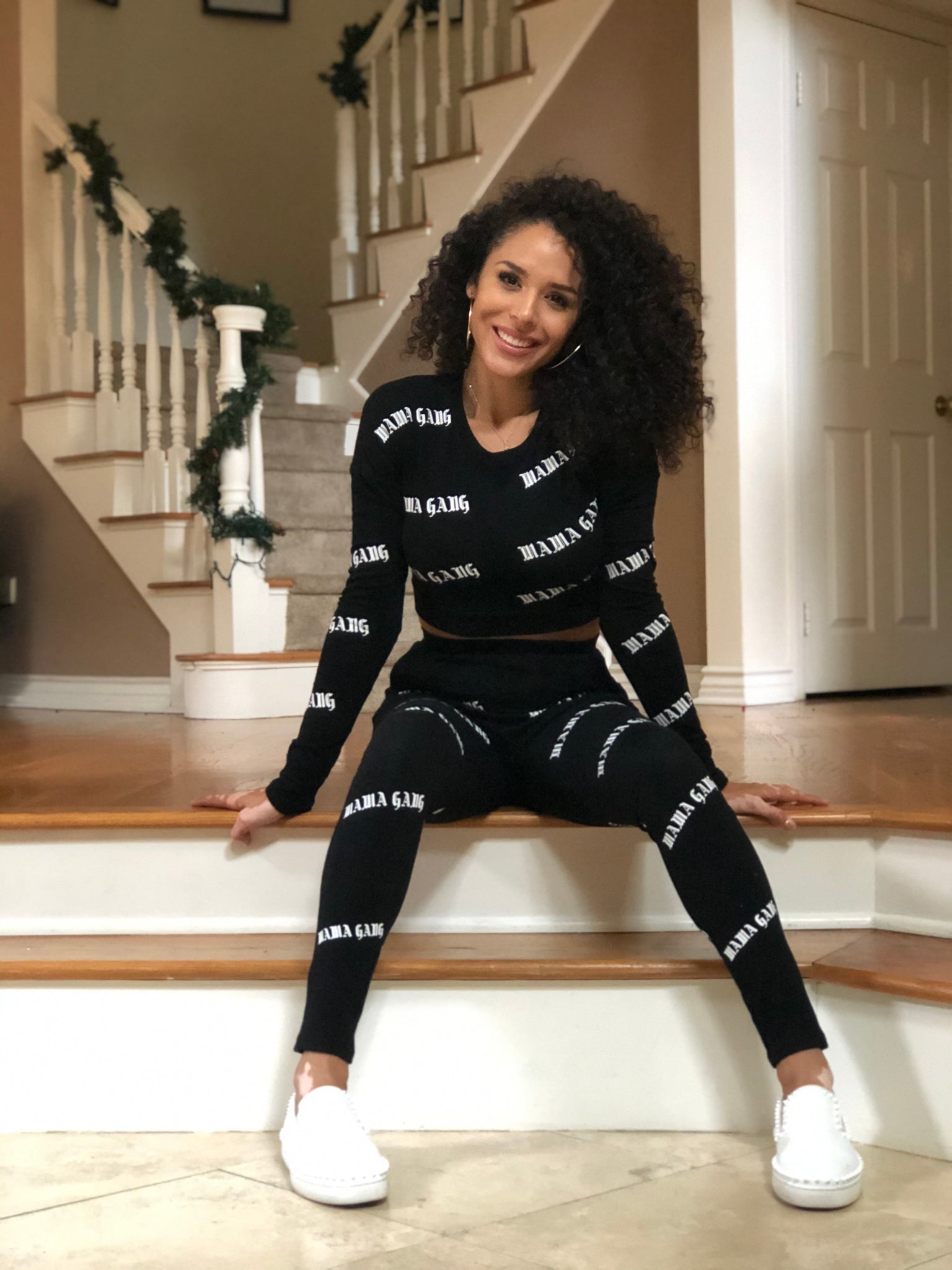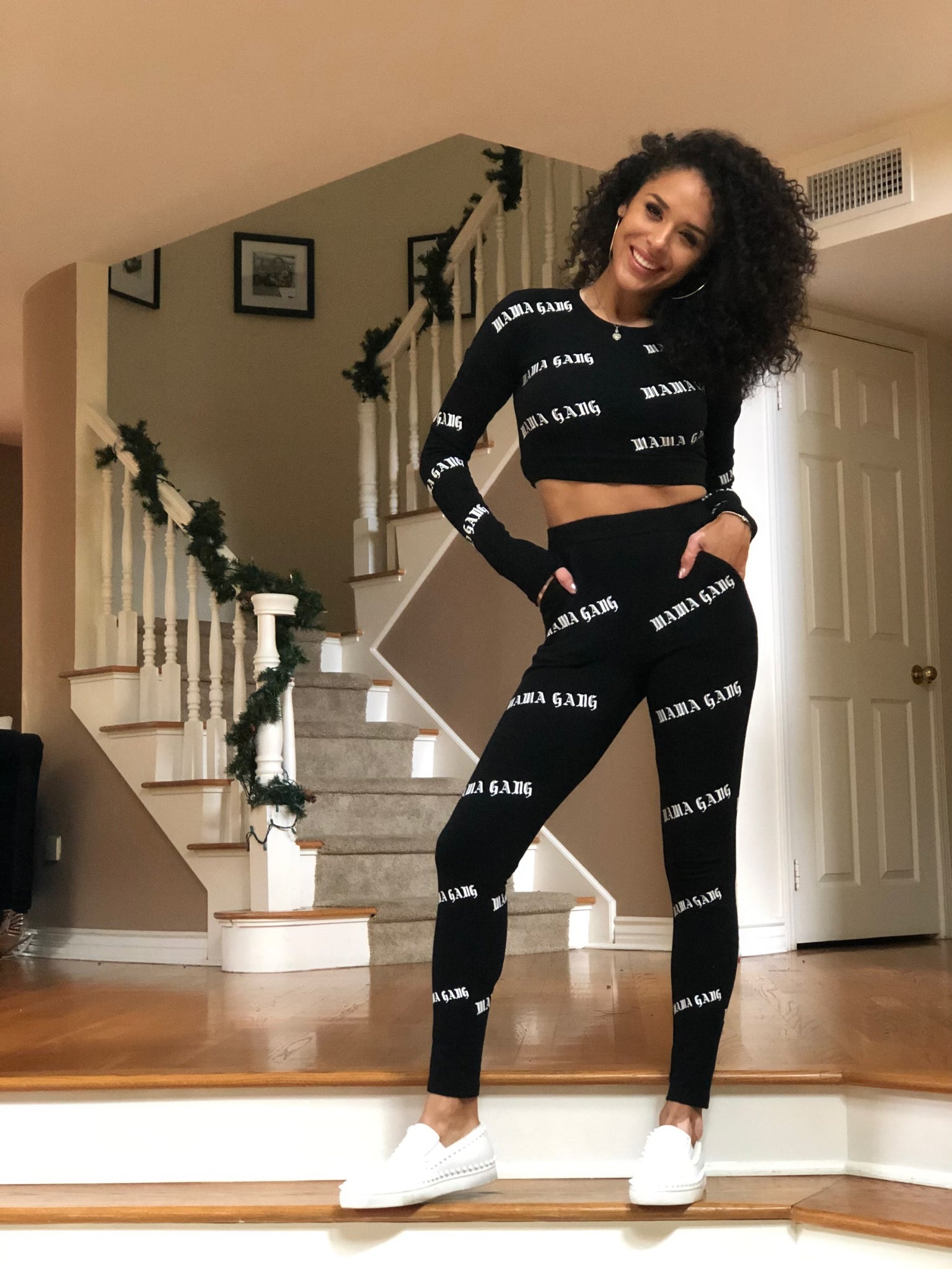 Cozy set with pockets. Model is wearing size small. Fits like cozy leggings and active top. Stretchy but true to size.